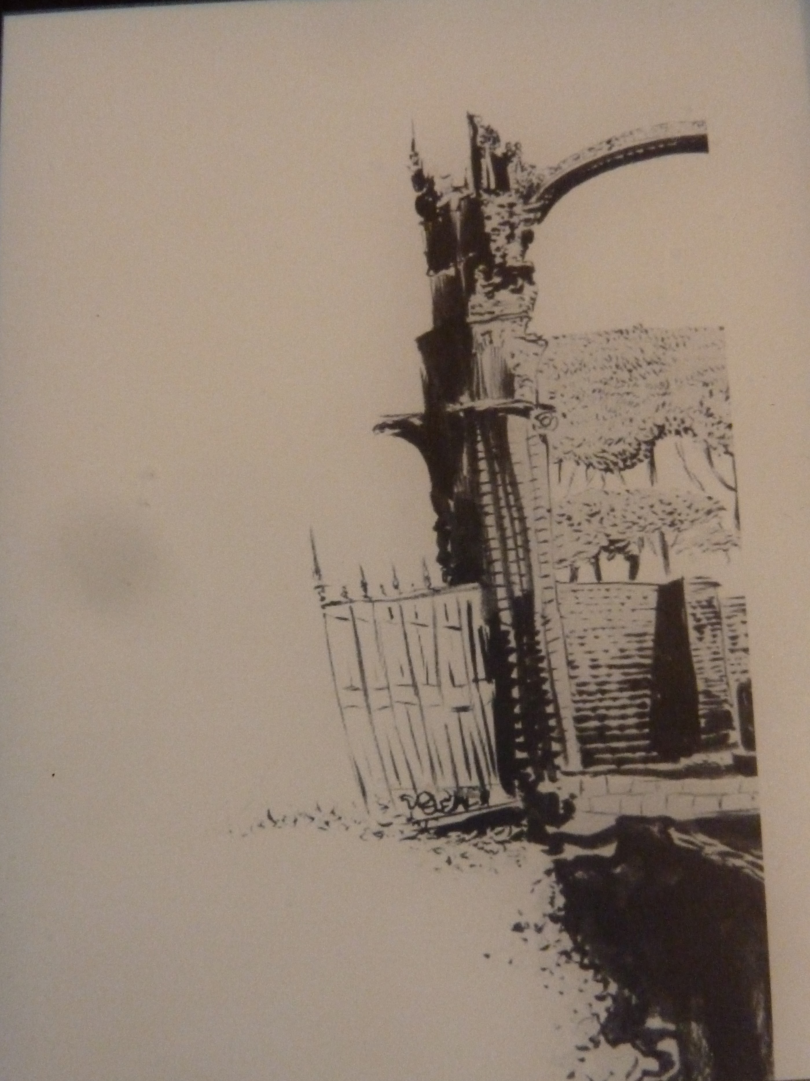 … “si vedevano la cappella funeraria abbandonata, i cancelli di ferro chiusi dal lucchetto, l’edera che si avviluppava intorno a una guglia, un alberello che spuntava da sopra le grondaie, all’altezza del tetto.