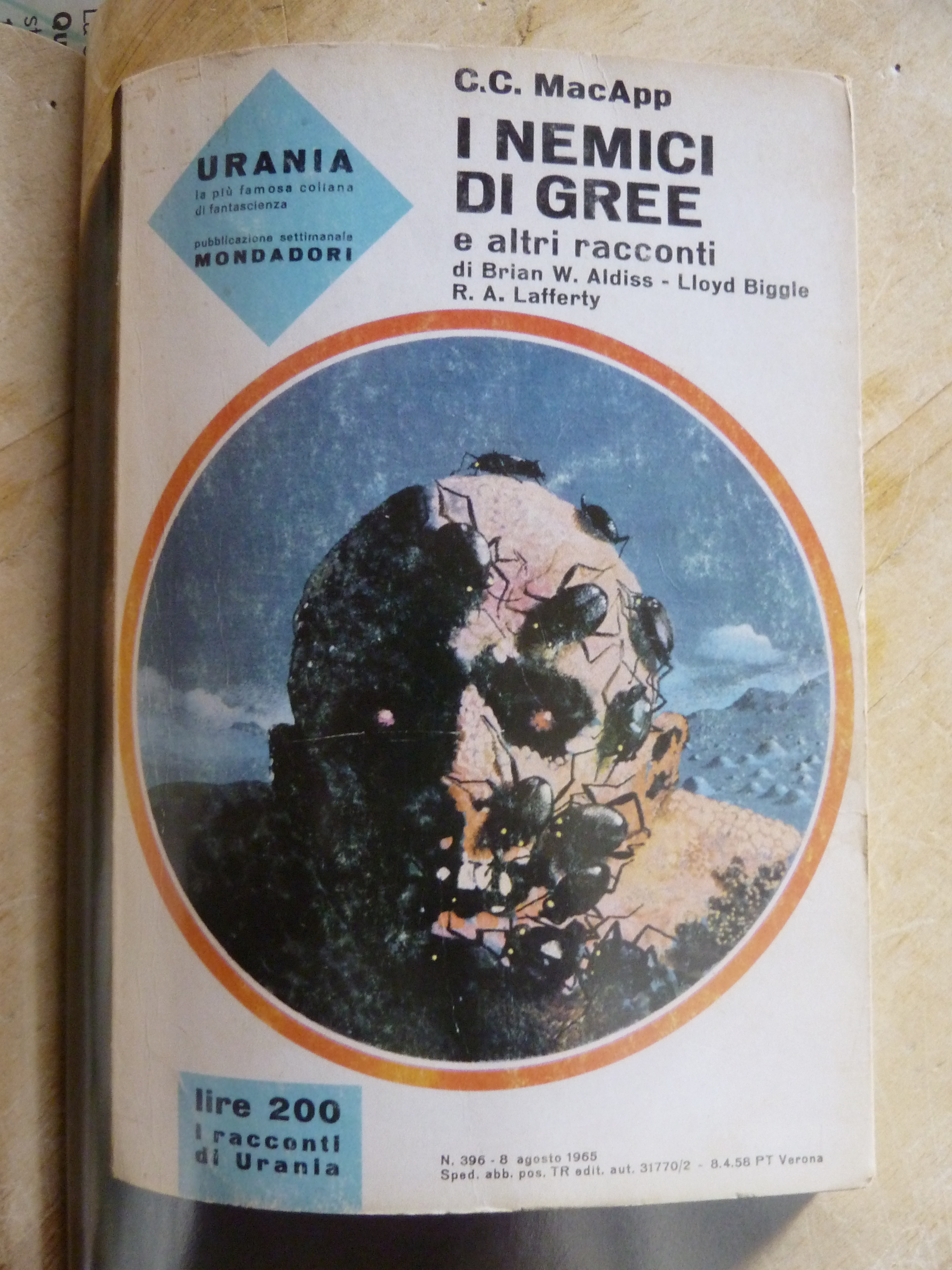 Il cuore del libro è invece costituito dalla riproduzione di una selezionata scelta di 42 copertine Urania – Periodici Mondadori di Milano, a partire dal n° 1 del 10 ottobre 1952, lire 150: Arthur Clarke, “Le sabbie di Marte”, per giungere al n° 730, del 28-8-1977, lire 700 – William Tenn, “Gli uomini nei muri”. Nel mezzo, una parte importante della storia d’Italia – così, senza parere.